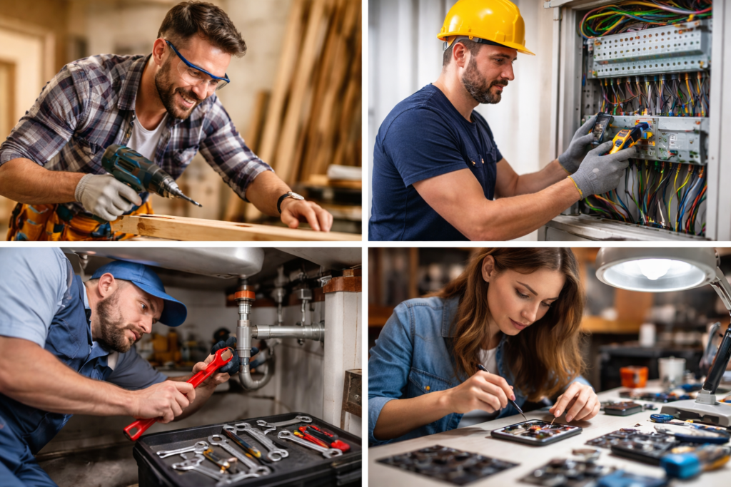 Esto encaja perfectamente con áreas como carpintería, electricidad, fontanería, reparación de móviles, mantenimiento industrial o automatización.