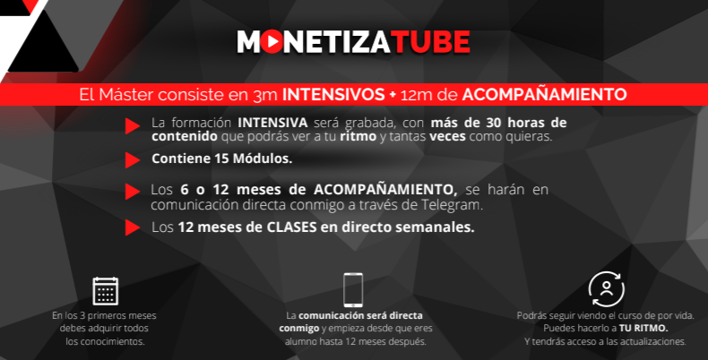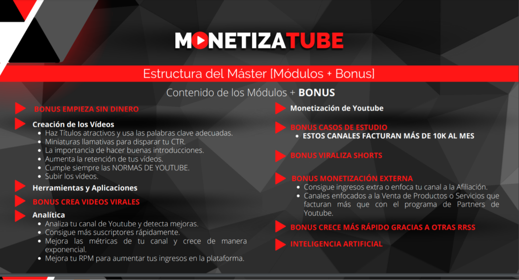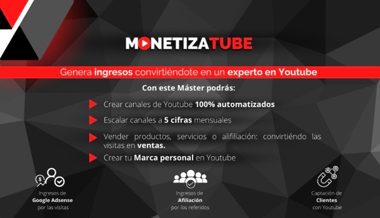 Con MonetizaTube aprenderás a crear canales que generan ingresos con: