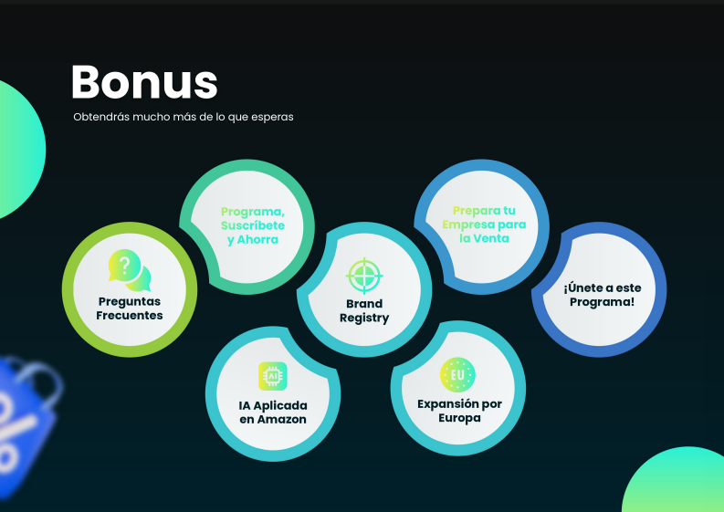 Uno de los puntos fuertes de AMZ Elite es que no se queda solo en lo básico. El programa incluye contenidos extra relacionados con publicidad en Amazon, Brand Registry, uso de inteligencia artificial aplicada al negocio y estrategias de expansión a otros mercados como Europa.