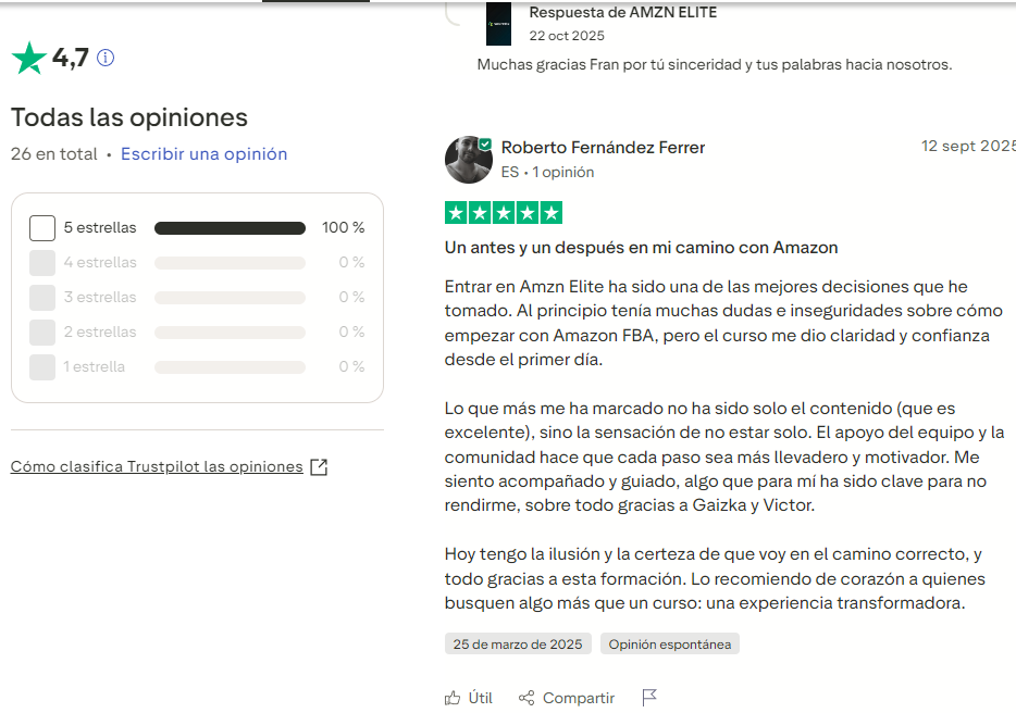 AMZ Elite es una formación sólida para quien quiere tomarse Amazon FBA en serio. No promete milagros, pero sí un sistema ordenado, acompañado y pensado para evitar errores comunes.