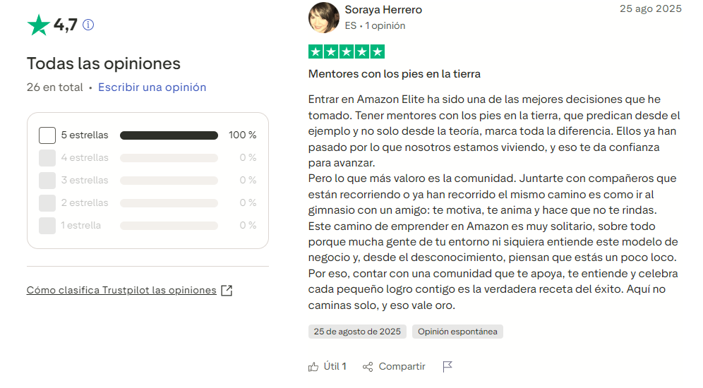 AMZ Elite ofrece seguimiento, comunidad privada y asesoramiento, lo que permite resolver dudas reales cuando aparecen. En un negocio como Amazon FBA, donde cada decisión tiene impacto económico, este acompañamiento aporta mucho valor.